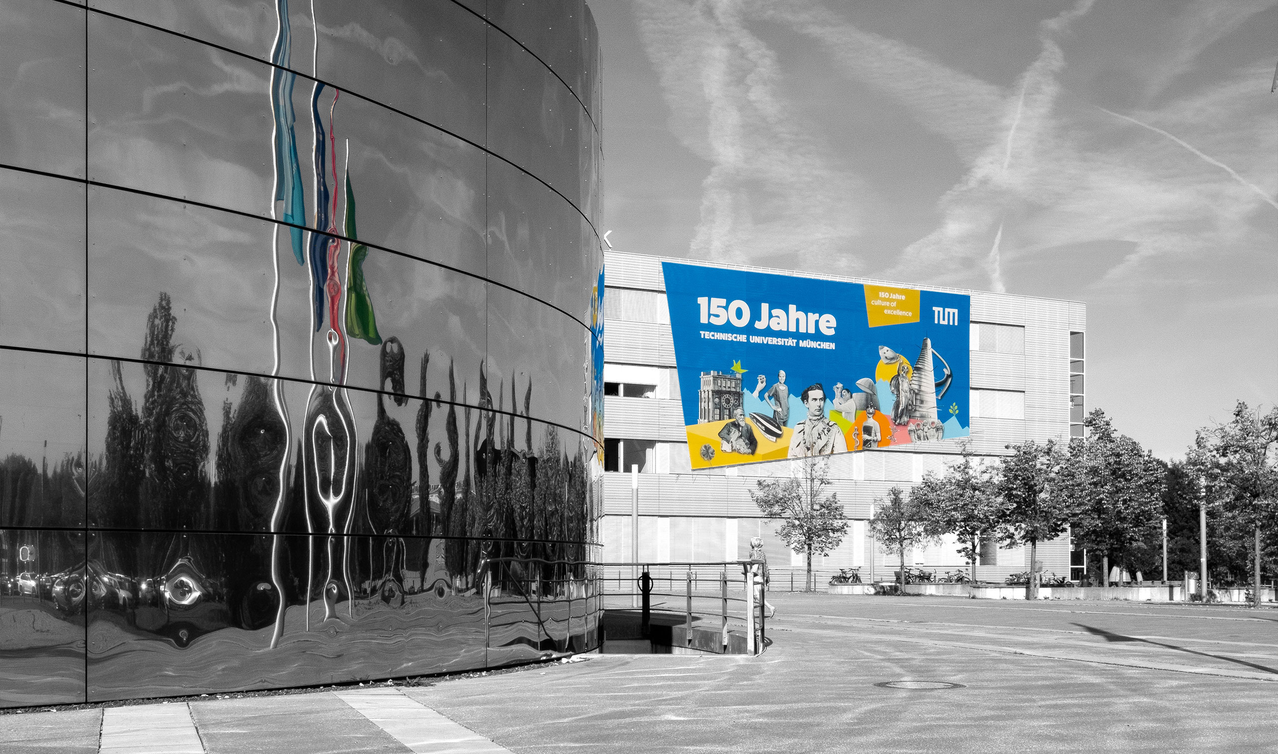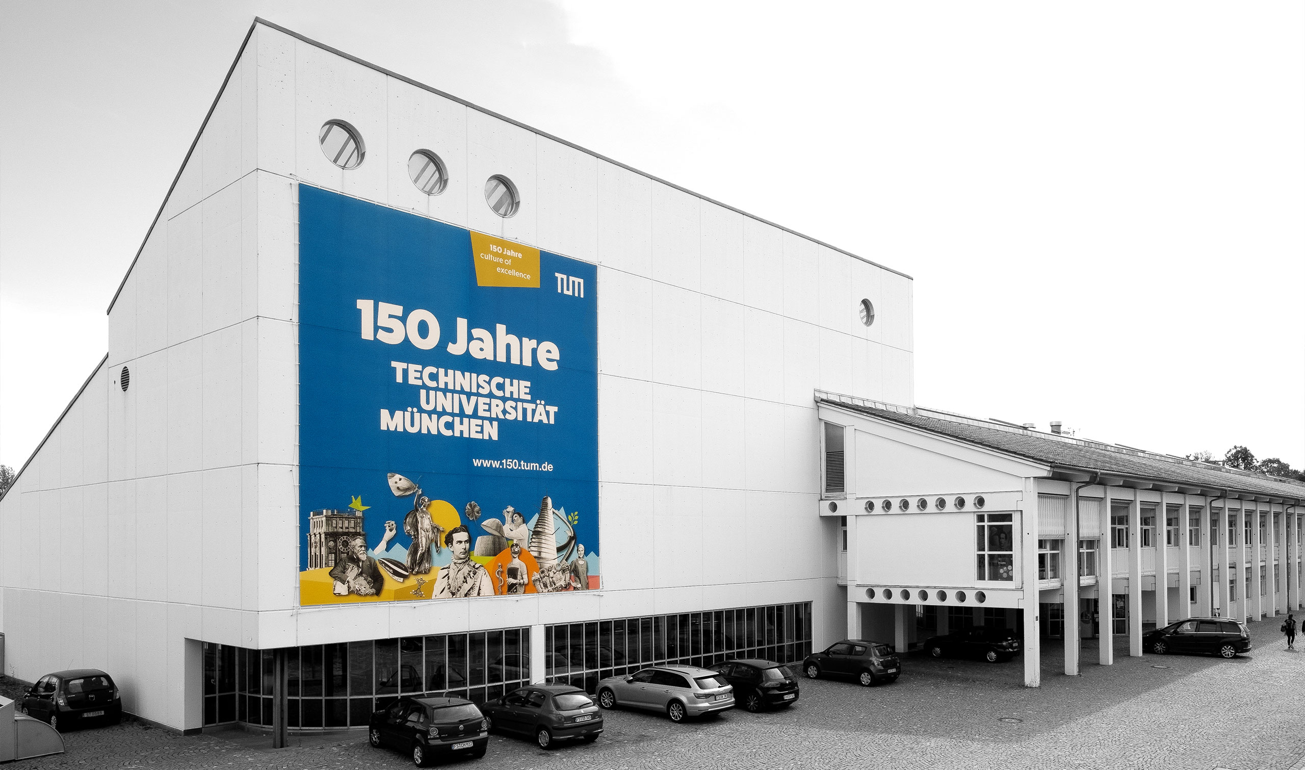 Im Jubiläumsjahr sollten alle Standorte der TUM mittels Gebäudebranding in Szene gesetzt werden. Zusätzlich begleiteten eine Vielzahl an Events und Maßnahmen die Festlichkeiten zum 150-jährigen Bestehen der Technischen Universität München, welche ebenfalls im Jubiläumsdesign geschmückt werden sollten.