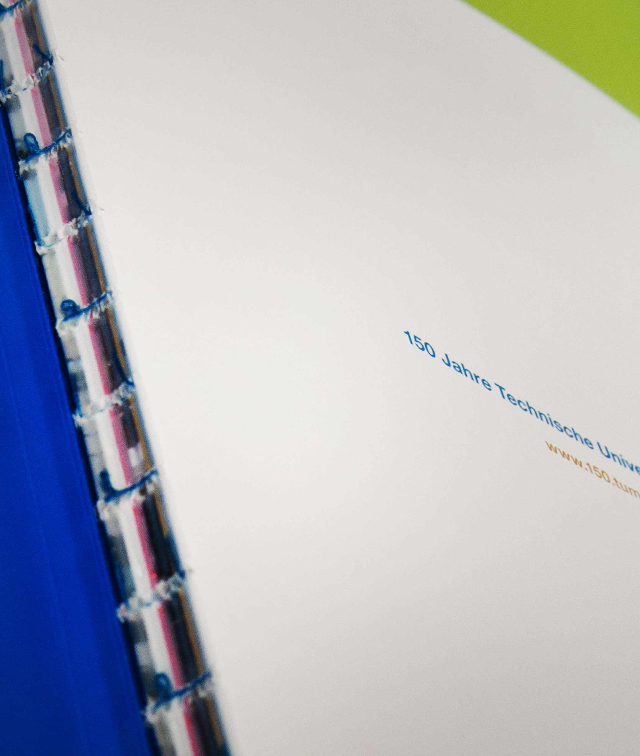 Möglichst viele Printpublikationen im Jubiläumsjahr sollten intern wie auch extern Aufmerksamkeit für das Jubiläum erzeugen und das besondere Jahr feiern. Dazu gehörten Broschüren, Programmhefte und Einladungen für die zahlreichen Feierlichkeiten sowie Dokumentationen und vieles mehr. Weit streuende Kommunikationsmittel waren auch die vielen Veröffentlichungen und Präsentationen der einzelnen Fakultäten und Einrichtungen. In allen fand das Jubiläumsdesign Anwendung.