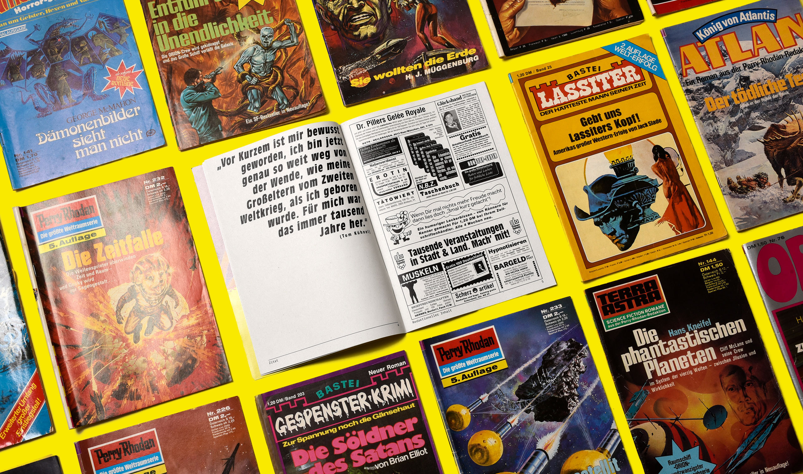 Dem diesjährigen Festival-Design liegt Brechts Dreigroschenroman zu Grunde. Wir greifen hierfür den Stil von Pulp-Magazinen und populären Kriminalheftchen aus den Sechzigerjahren auf. Auf dem Cover eine schwerbewaffnete Blondine im roten Kleid, im Programm eine wilde Mischung aus typografischen Stilen und trashigen Layoutelementen; Programmpunkte, die sich gegenseitig lautstark überbieten, banale Kleinanzeigen, welche mit den eigentlichen Veranstaltungsinformationen um die Aufmerksamkeit der Betrachter*innen buhlen. Ein Brechtfestival wie ein trunkener Abend auf dem Plärrer – ein einziges Spektakel.